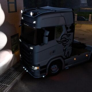 ETS2 1.57 sürümü için orjinal scssoft tırı Scania S 2016’nın ön ızgara üzerinde yer alan Scania logosu yerine 770S ledli beyaz ve krom logo modudur. Scania kamyon hayranları için gece hoş bir aydınlatma sunar. Tırı...