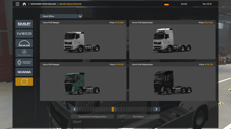 ETS 2 1.56 ve 1.57 sürümlerinde test ettiğimiz ve artık yeni modeller eklendiğinde oyunun galerilerinden kaldırılan ama halen oyunda yer alan kamyonları satın almak için bu modu kullanabilirsiniz.